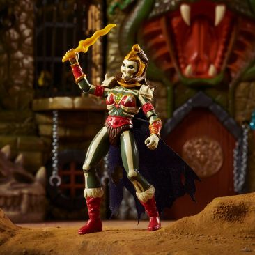 The Masters of the Universe Snake Lair is the fortress of Lady Slither and home base for the Snake Men. It was first featured in Classics Mini Comic #5, “He-Man vs. Skeletor! Their Final Battle!” but was never created in toy form. Now, you have the chance to bring it to life! The MOTU community voted it Eternia’s Choice, and we’ve incorporated fan feedback to shape the design. It’ll feature a throne room for Lady Slither, with a serpentine design exactly to her liking. Unwelcome visitors will be greeted with blasters, snatched up in capture devices, and placed into the iron maiden or snake shackles. No villain is complete without an evil steed, this set also features Lady Slither’s two-headed serpentine steed Chimera. This is your one and only chance, fund all the tiers and restore Lady Slither’s stronghold to its Preternian glory!