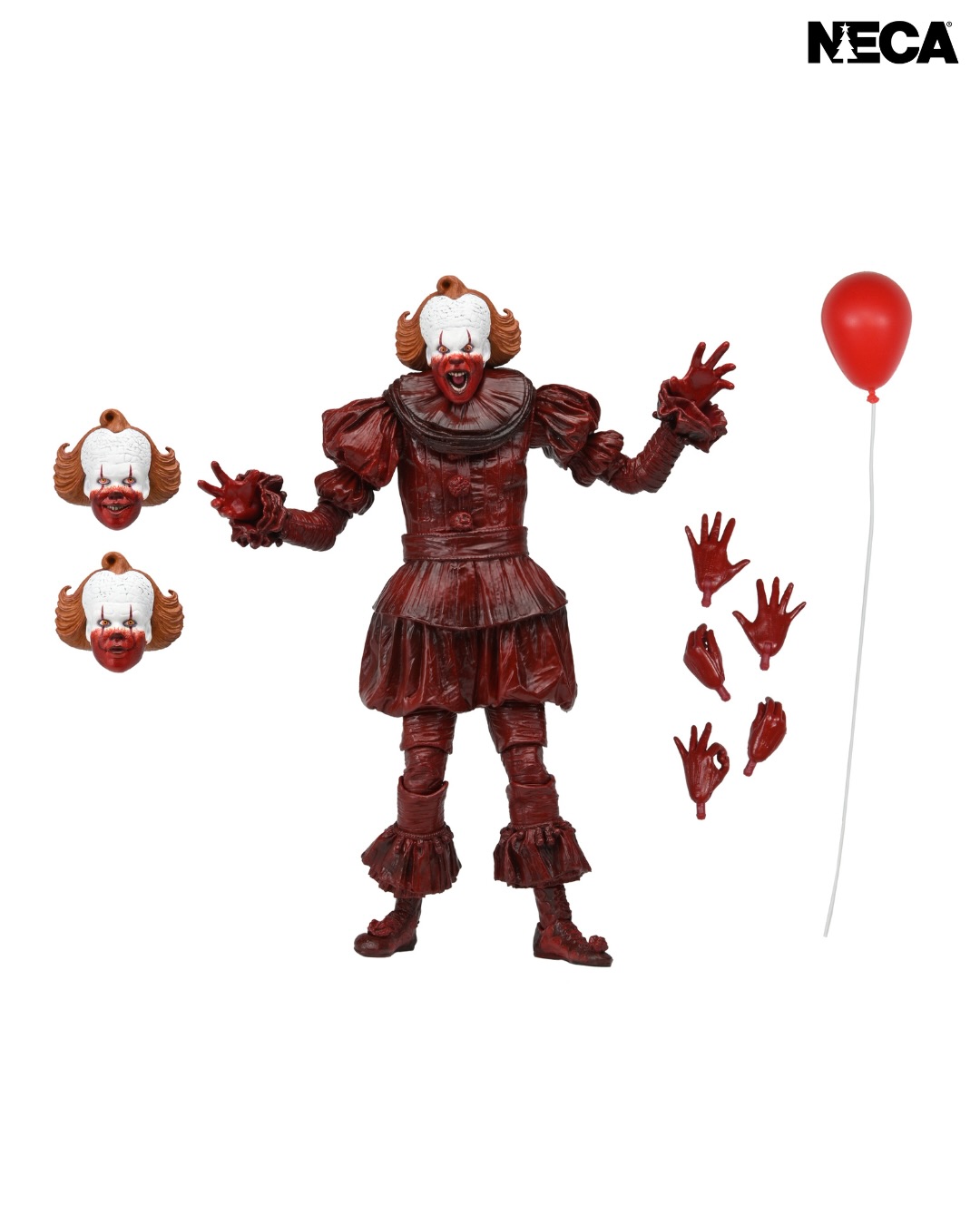 A new Pennywise figure from NECA is now available to pre-order. The new Bloody Pennywise Ultimate 7″ Scale Figure is based on the IT: Welcome to Derry series that airs on HBO Max. The figure includes three interchangeable portraits, a few swap out hands, and a red balloon. The figure is prieced at approximately $40, with a release scheduled for the Second Quarter of 2026.