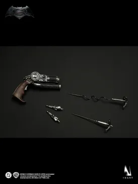 Includes two types of die-cast Batarangs and a rich selection of advanced gadgets. The grenade launcher can be manually loaded, the sniper rifle features jointed and removable components, and the grapple gun includes interchangeable hooks.Accessories: